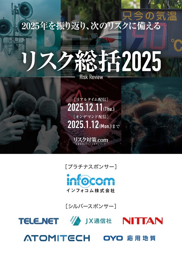 始まった大阪・関西万博 リスクは会場だけじゃない 大阪・関西万博2025が開幕しました。運営コンセプトに掲げた「並ばない万博」は、初日から通信障害によりチケットのQRコード表示に手間取るなど、高度システム依存の弱点も浮き彫りにしています。10月の閉幕まで約半年間、サイバー攻撃をはじめテロ、群集事故など、さまざまなリスクに気をつける必要があるでしょう。 万博は国の行事ですから、長期にわたって国際的な注目が集まります。リスクはもちろん会場周辺に限りません。オール・ジャパンで万博を成功させるにはどのような注意が必要か、危機管理の専門家に聞きました。 恒例の事例紹介は、南海トラフ地震や首都直下地震への備えにフォーカス。社会構造や職場環境の変化をとらえ、初動対策を根本から見直す企業を取り上げました。また新コーナーとして、専門的な知見・ノウハウをもって企業のリスクマネジメントに寄り添う「危機管理の伴走者たち」を紹介します。 Contents 〇Newsズームアップ 多発した山火事 常識をくつがえす 炎の質が変化し飛び火の影響が増大 〇特集 始まった大阪・関西万博 期間中の注意点 インタビュー 国際イベント開催中は会場以外のリスクも高まる システムトラブルによる事故の連鎖に要注意 公益財団法人公共政策調査会理事・研究センター長 板橋功氏 〇ニュースダイジェスト 01 防災・危機管理ニュースダイジェスト 4月のニュース早わかり 02 ワード解説 サイバー対策の新制度「サプライチェーン5段階評価」 03 リスク対策.comのセミナー・勉強会報告 危機管理塾/ESGリスク勉強会 〇トップインタビュー 危機管理の伴走者たち デジタルデータソリューション社長 熊谷聖司氏 「まさかうちが狙われるとは」 経営者の本音に向き合う 〇事例 初動対策のアプローチ 見直す防災 01 柔軟性と合理性で守る職場 ハイブリッド勤務時代の“リアル”な改善 カカクコム 02 入居ビルの耐震性から考える初動対策 退避場所への移動を踏まえたマニュアル作成 押入れ産業 〇ニュープロダクツ 企業のリスク対策に役立つ商品・サービス 発行日:2025年5月5日 定価:3300円(税込) デジタルコンテンツ(PDF A4横38ページ) 【リスク対策.PRO会員なら、すべて無料で読めます】