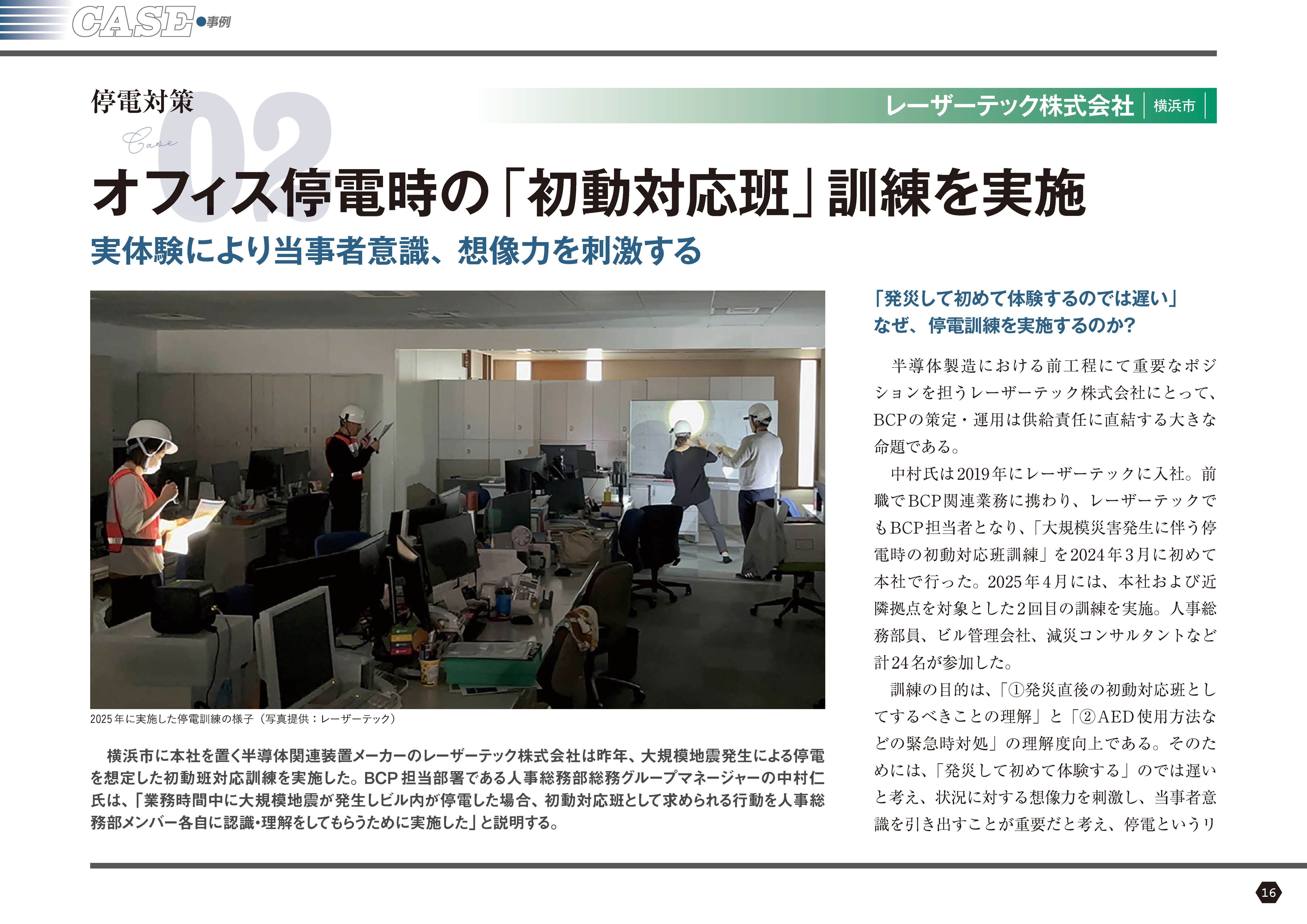 オフィス停電時の「初動対応班」訓練を実施