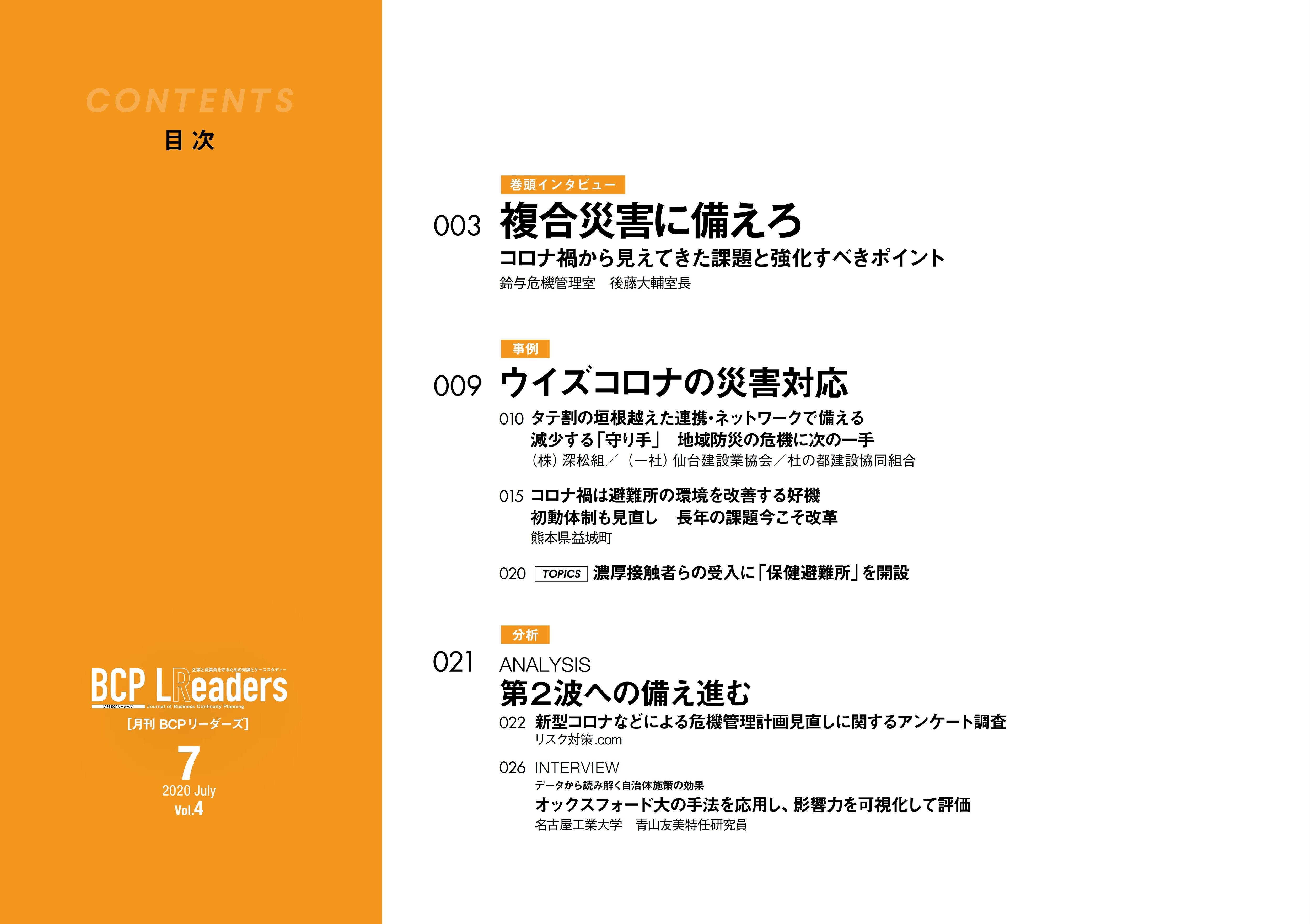 本特集では数多の災害を乗り越えて得た教訓を生かし、コロナ禍さえも「追い風」にして、避難や初動、復旧にかかる防災体制を改革する企業・組織の事例を紹介。また企業が今後力を入れようとしている重点対策を、独自アンケート調査から分析しています。自治体の感染対策が人の行動に与える影響を定量評価する手法についても解説しました。