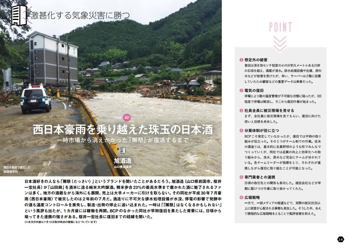 昨年の台風19号水害で主要生産拠点が水没し長期の出荷停止を余儀なくされたきのこ総合企業のホクト(長野県)、一昨年の西日本豪雨で酒造りが止まり独自ブランド消滅の危機も囁かれた旭酒造(山口県)。両者には、平時の取り組みの中で災害に強い組織をつくり上げてきた経緯がありました。被災から復旧までをインタビュー形式で紹介します。