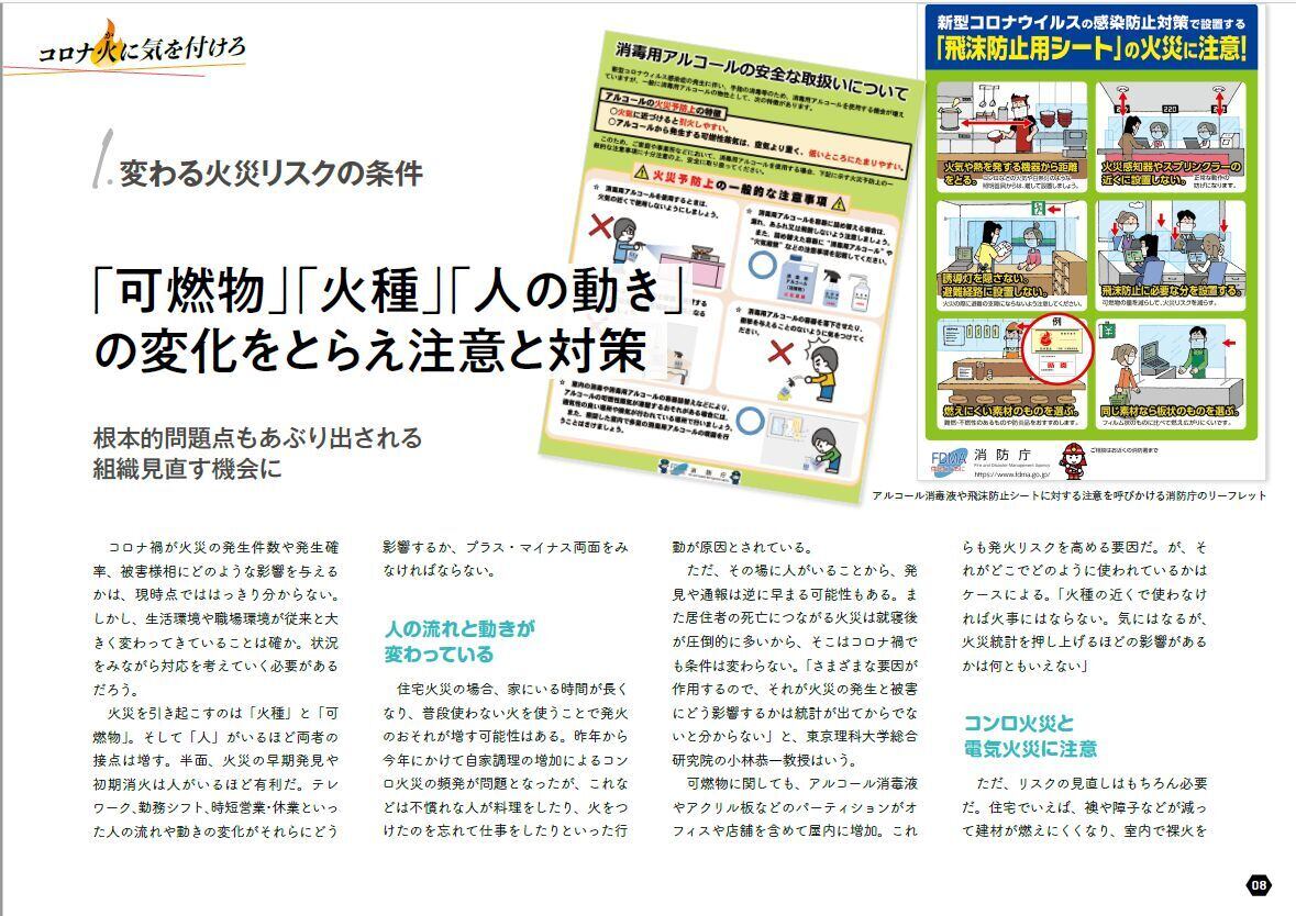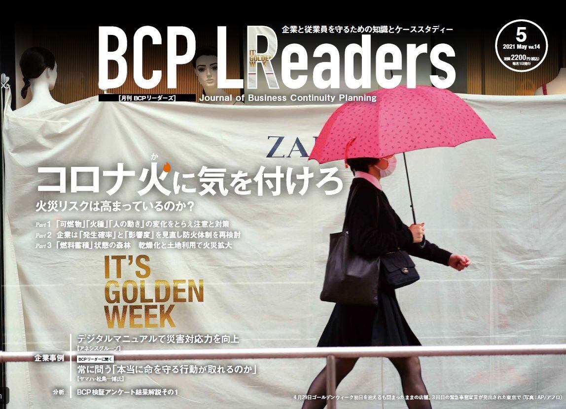 月刊BCPリーダーズ5月号は、工場火災が多発している状況を受け、コロナ禍と「火災リスク」の関係にフォーカス。同時に組織の奥でくすぶり続けているリスクマネジメント上の問題(=火種)を検証し、解決の方向性を考察しました。また事例紹介では、緊急時においても社員が自律的に動ける組織を目指して奮闘する企業・人を取り上げています。