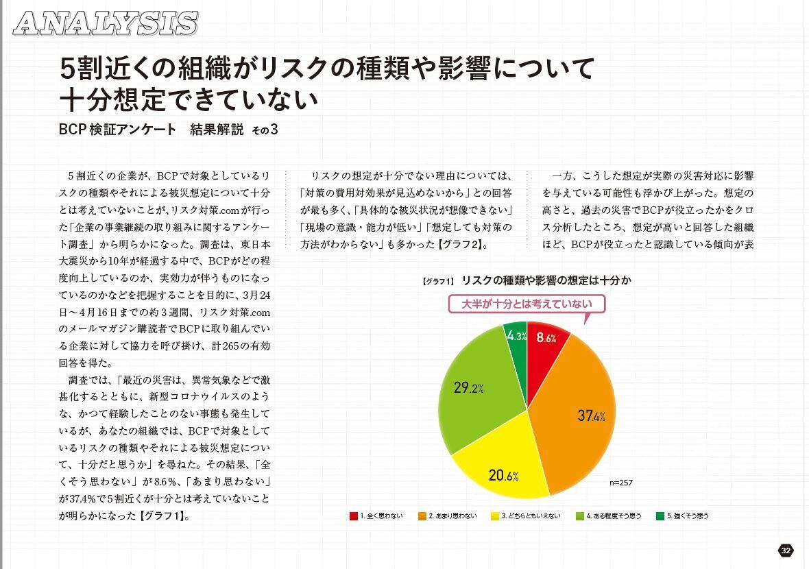 5割近くの企業がリスクの種類や影響について十分想定できていない