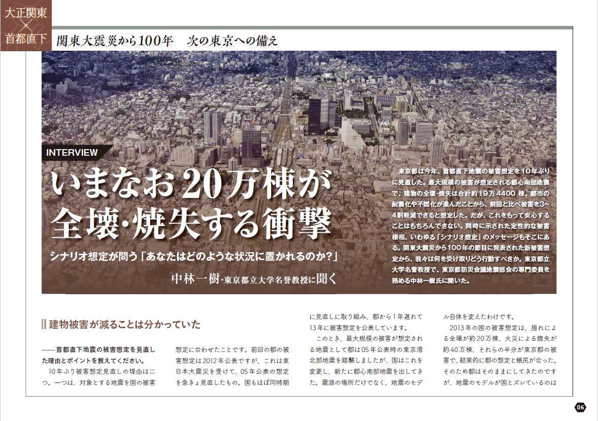 去る9月1日で関東大震災から99年が過ぎ、すでに100年目に入りました。折しも今年は東京都が首都直下地震の被害想定を10年ぶりに改定。「次の東京」に備え、必要な震災対策を考え直すタイミングです。